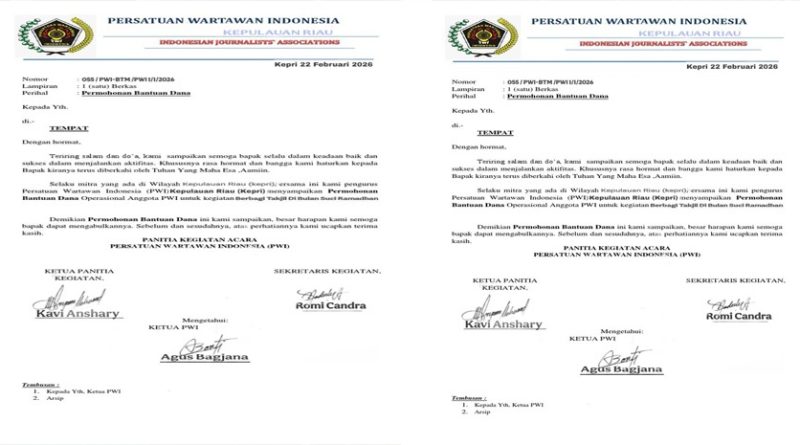 Read MoreBATAM — Proposal permohonan bantuan dana yang mengatasnamakan pengurus Persatuan Wartawan Indonesia (PWI) Provinsi Kepulauan Riau dilaporkan beredar di tengah