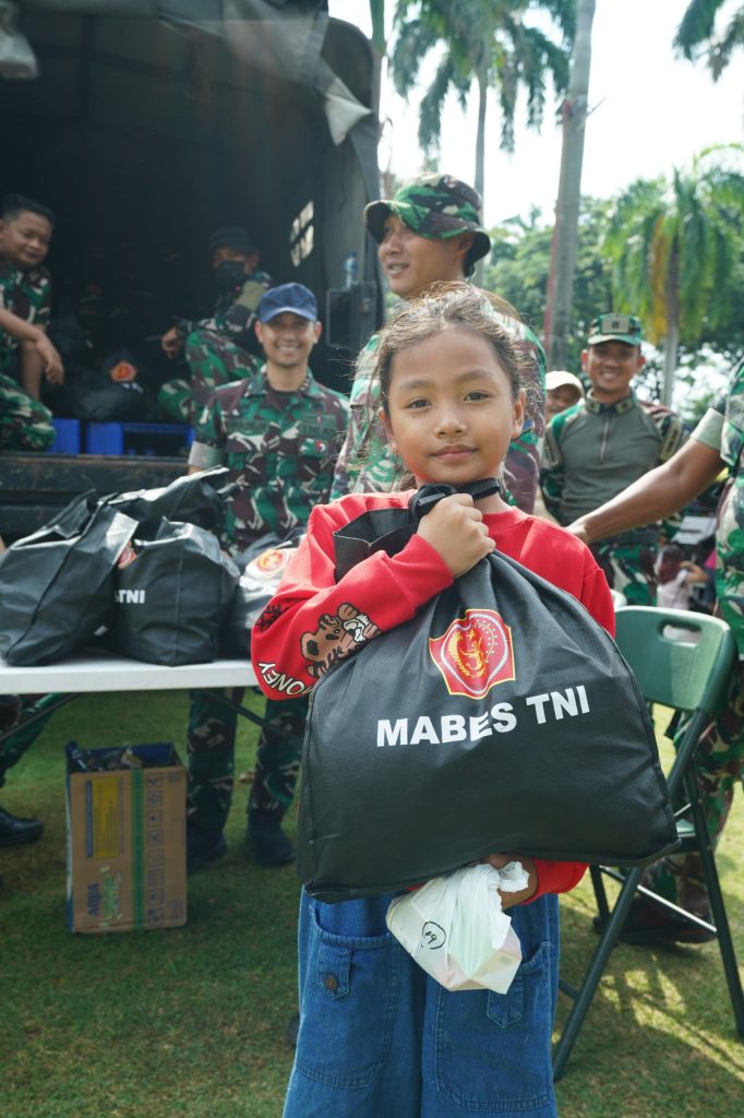 Di tengah semarak Pesta Rakyat HUT ke-80 TNI, ribuan warga tampak tersenyum bahagia saat menerima paket sembako dari TNI.