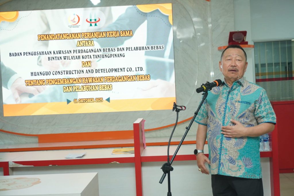 TANJUNGPINANG, katasiber – Pada 1 Oktober 2025, Bobby Jayanto menghadiri acara penandatanganan Perjanjian Kerja Sama antara Badan Pengusahaan Kawasan Perdagangan Bebas dan Pelabuhan Bebas Bintan Wilayah Kota Tanjungpinang dengan Huanguo Construction and Development Co. Ltd.