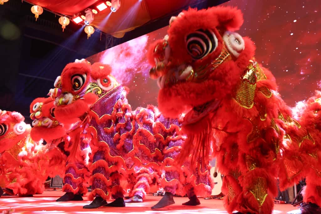 Puncak perayaan pada malam hari dimeriahkan dengan beragam penampilan, mulai dari nyanyian lagu-lagu Tionghoa, tarian tradisional, hingga atraksi Drum dan Barongsai yang membuat suasana semakin semarak. (Ky)
