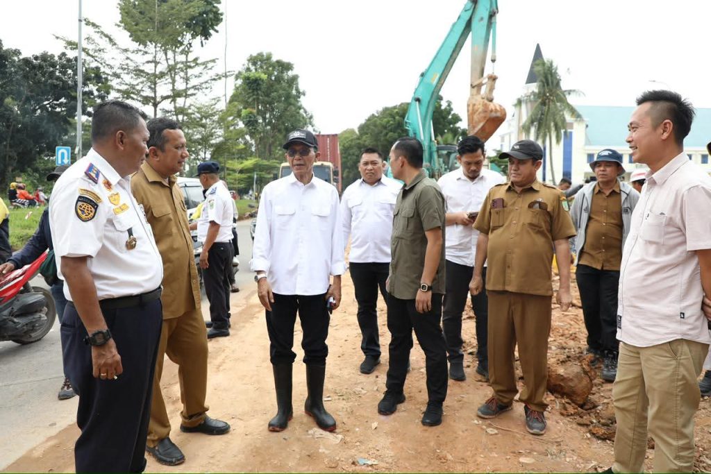 BATAM, katasiber – Wali Kota Batam, Amsakar Achmad, meninjau langsung pengerjaan box culvert dan peningkatan jalan di Simpang Helm, Jalan Raja Isa, Batamcenter, Senin (13/10/2025).