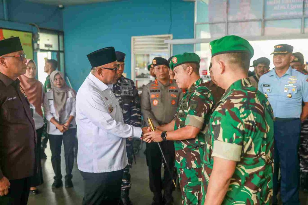 TANJUNGPINANG – Wali Kota Tanjungpinang Lis Darmansyah bersama Komandan Kodim 0315/Tanjungpinang Kolonel Inf. Abdul Hamid, S.I.P., serta jajaran Forkopimda menyambut kedatangan Panglima Kodam XIX/Tuanku Tambusai (Pangdam XIX/TT) Mayjen TNI Agus Hadi Waluyo, S.A.P., M.M., CHRMP., di Pelabuhan Sri Bintan Pura, Rabu (22/10/2025).