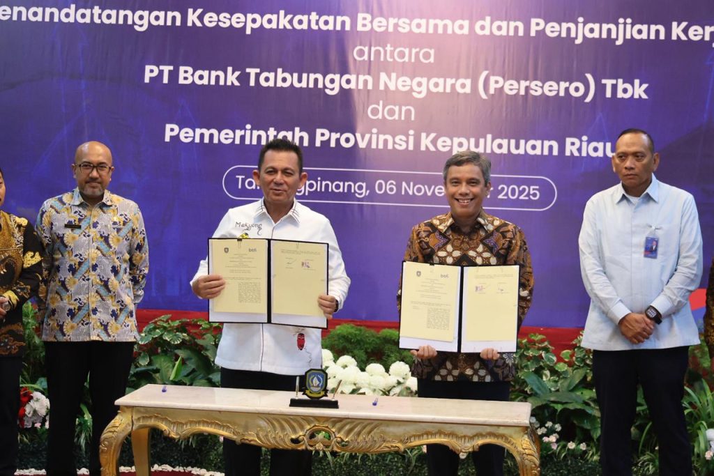 BATAM, katasiber – Pemerintah Provinsi Kepulauan Riau dan PT Bank Tabungan Negara (Persero) Tbk menjalin kolaborasi strategis untuk membangun ekosistem keuangan daerah yang produktif, inklusif, dan berkelanjutan. Komitmen tersebut ditandai dengan penandatanganan Kesepakatan Bersama dan Perjanjian Kerja Sama di Gedung Daerah Provinsi Kepulauan Riau, Kamis (6/11).