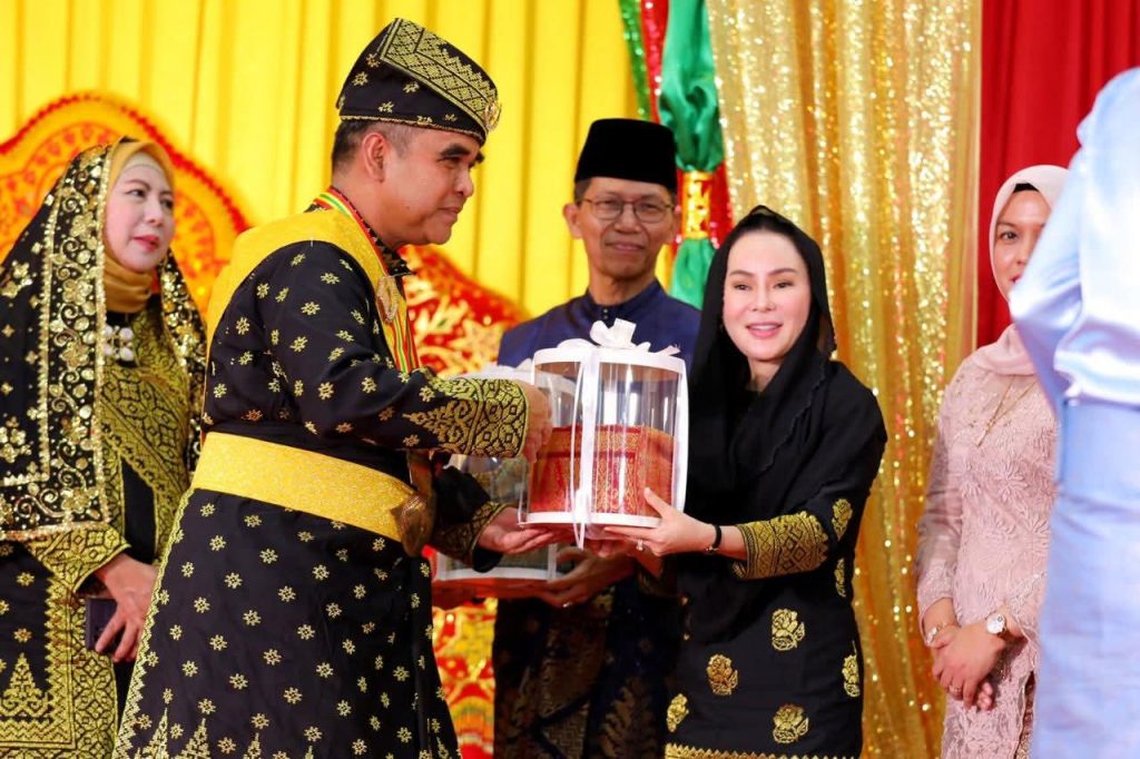 BATAM, katasiber – Wali Kota Batam, Amsakar Achmad, bersama Wakil Wali Kota Batam, Li Claudia Chandra, menghadiri Penganugerahan Gelar Kebesaran Adat Lembaga Adat Melayu (LAM) Kepulauan Riau di Balai Adat Seri Indra Sakti LAM Kepri, Tanjungpinang, Jumat (14/11/2025).