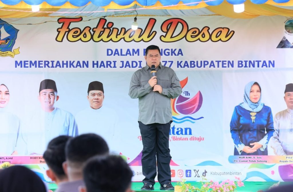Sekretaris Daerah Kabupaten Bintan Ronny Kartika yang membuka kegiatan secara resmi, menyampaikan apresiasi sekaligus ucapan terimakasih kepada Pemerintah Desa dan panitia yang turut memeriahkan rangkaian kegiatan menyambut puncak Hari Jadi ke-77 Kabupaten Bintan.