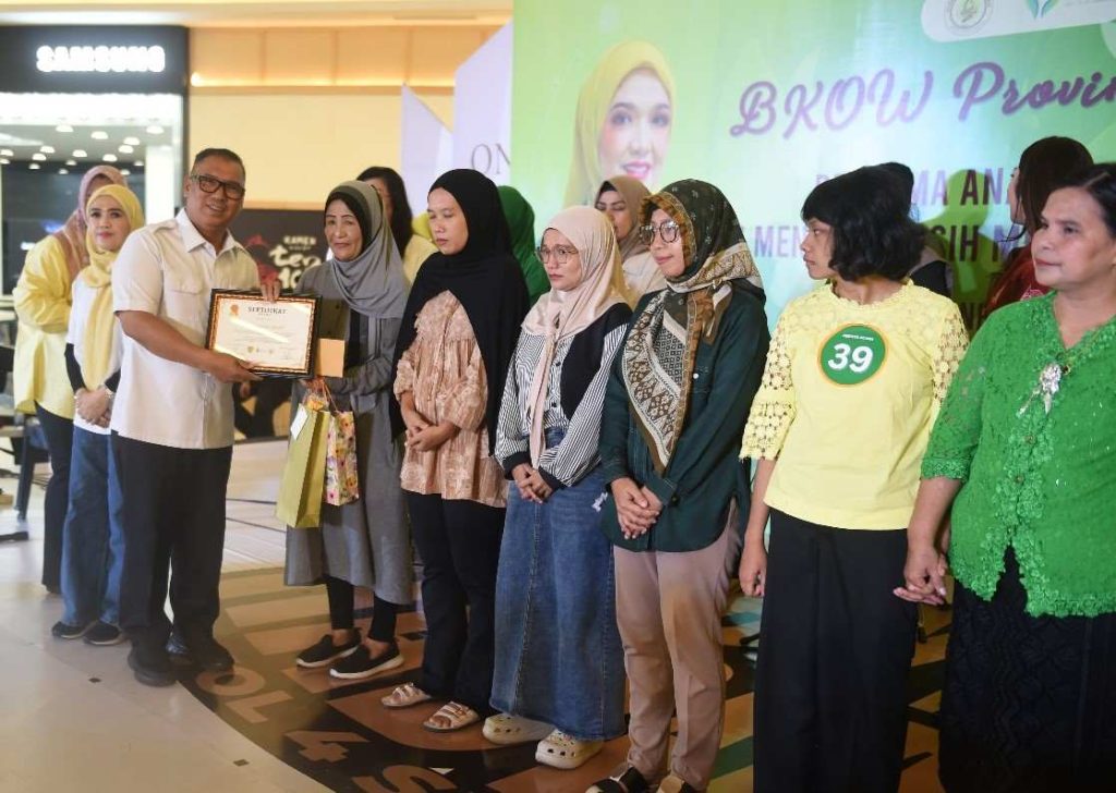Wakil Gubernur Kepri, Nyanyang Haris Pratamura memberikan penghargaan berupa sertifikat kepada kelaraga dalam rangkaian peringatan Hari Ibu Provinsi Kepri 2025 yang digekar BKOW Kepri.