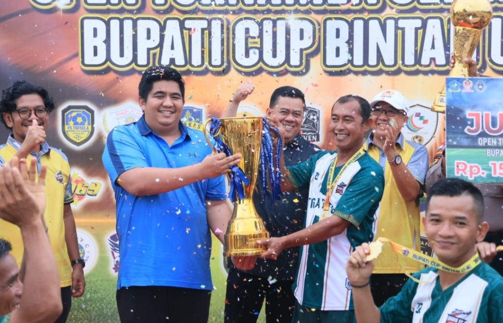 BINTAN – Turnamen Sepak Bola Bupati Cup Bintan U-40 resmi ditutup pada Minggu, 7 Desember 2025 di Lapangan Mantrust, Desa Toapaya Selatan.