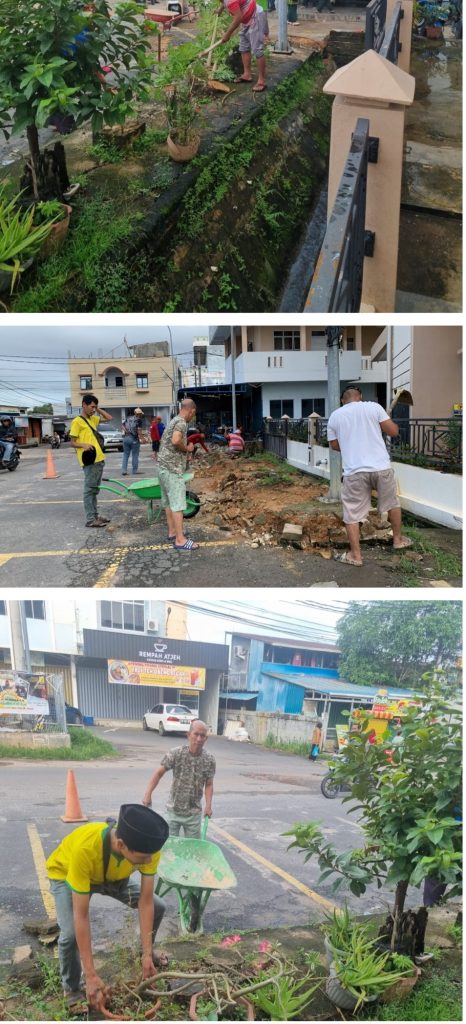 Sejak pukul 07.30 WIB, jamaah masjid dan warga sekitar berdatangan, menyatukan tenaga dan niat dalam gotong royong massal yang digelar untuk membongkar taman depan masjid dan menimbun lahan parkir di sisi Masjid Namirah.