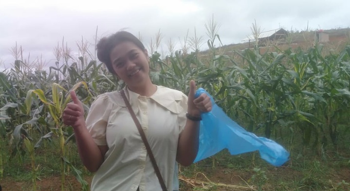 Di antara deretan tanaman jagung yang menjulang setinggi pinggang orang dewasa, terlihat tawa anak-anak yang berlarian kecil sambil memegang plastik belanjaan.
