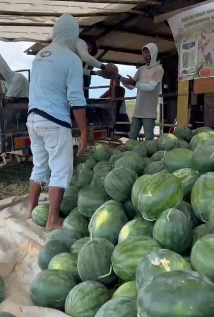 Di atas lahan eks tambang biji bauksit yang sebelumnya dinilai kurang produktif, para petani kini mampu melaksanakan panen raya semangka dengan penuh rasa syukur dan kegembiraan. Sejak Selasa hingga hari ini, Kamis (5/2/2026) masih panen.