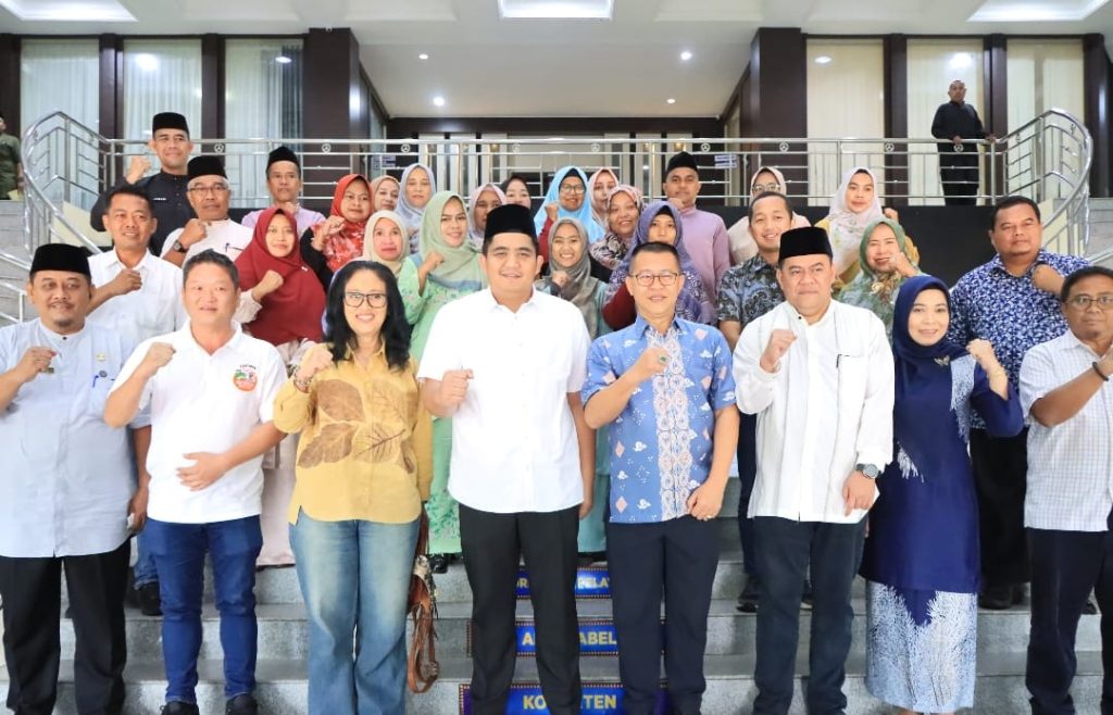 Bupati Bintan Robi Kurniawan foto bersama usai mengadakan pertemuan dengan pihak manajemen PT JAPFA Comfeed Indonesia Tbk yang menggelar Diseminasi Program JAPFA for Kids 2025 pada, Senin (23/02/2026) di Ruang Rapat 2 Kantor Bupati Bintan. f-humas
