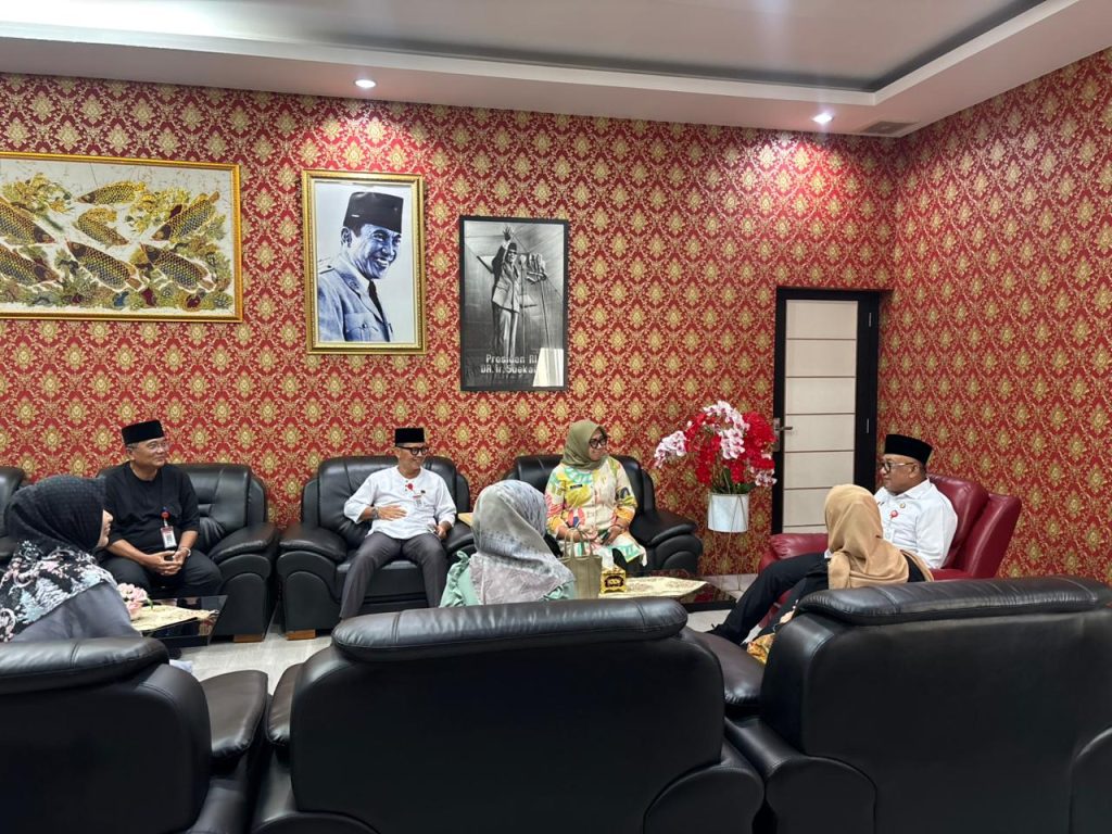 Suasana pertemuan Wali Kota Tanjungpinang, H.Lis Darmansyah saat menerima audiensi jajaran Kwartir Cabang Gerakan Pramuka Kota Tanjungpinang yang dipimpin Ketua Kwarcab Gerakan Pramuka Kota Tanjungpinang, Kak Yuniarni Pustoko Weni di Ruang Kantor Wali Kota, Senin (2/3/2026). f-humas