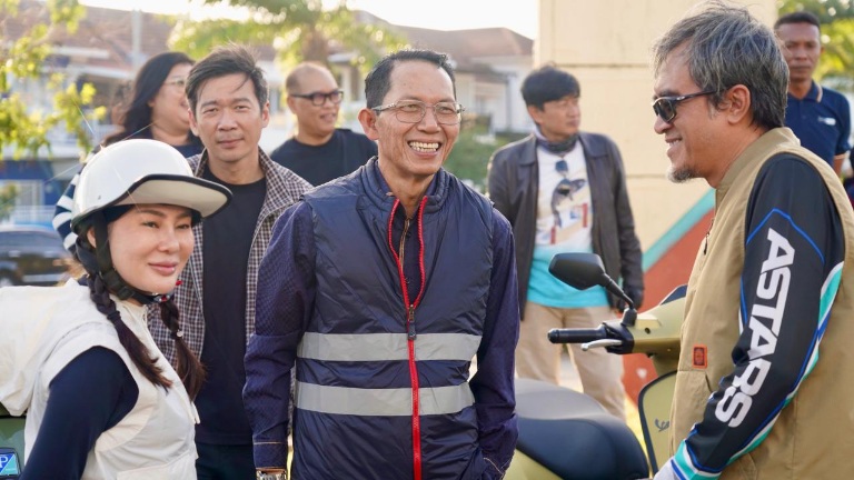 BATAM, katasiber – Kepala BP Batam, Amsakar Achmad dan Wakil Kepala BP Batam, Li Claudia Chandra melakukan riding bersama Komunitas Vespa Batam pada Sabtu (14/3/2026).