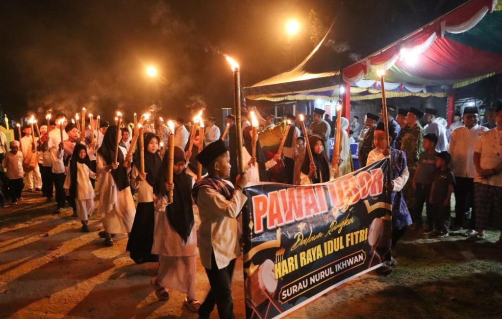 BINTAN – Ratusan obor yang menyala mengiringi gema malam takbir Hari Raya Idul Fitri 1447 H benar-benar mengundang antusias ribuan masyarakat yang memadati ruas jalan Km.16 Bintan menuju Bundaran, Jumat malam (20/03/2026).