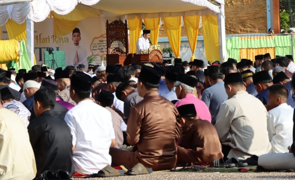 Bupati Bintan saat acara Idulfitr bersama pegawai. f-humas