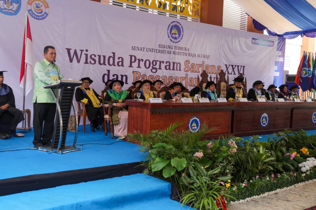 TANJUNGPINANG, katasiber – Gubernur Kepulauan Riau H. Ansar Ahmad menghadiri Wisuda ke-26 Sarjana dan Pascasarjana Universitas Maritim Raja Ali Haji yang digelar di Pelataran Gedung FEBM/FKIP Kampus Dompak, Sabtu (28/03).
