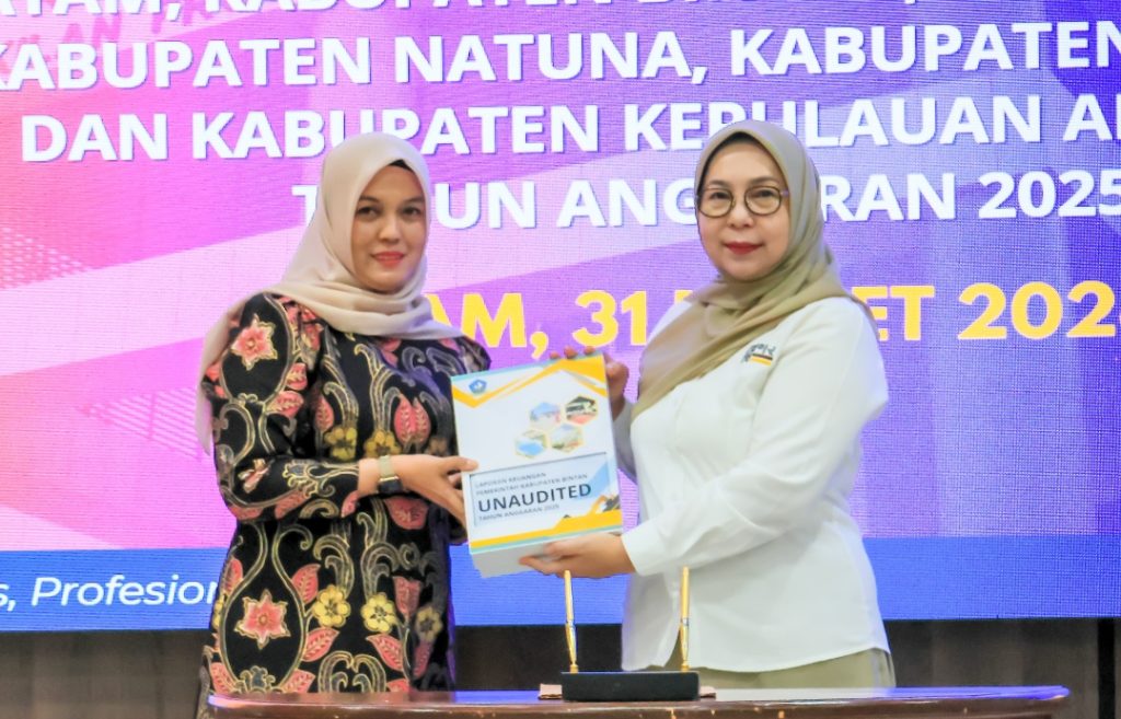 BINTAN – Wakil Bupati Bintan, Deby Maryanti menyerahkan Laporan Keuangan Pemerintah Daerah (LKPD) Kabupaten Bintan Unaudited Tahun Anggaran 2025 ke Badan Pemeriksa Keuangan (BPK) RI Perwakilan Kepri, Selasa (31/3/2026) di Auditorium BPK RI Perwakilan Kepri, Kota Batam.