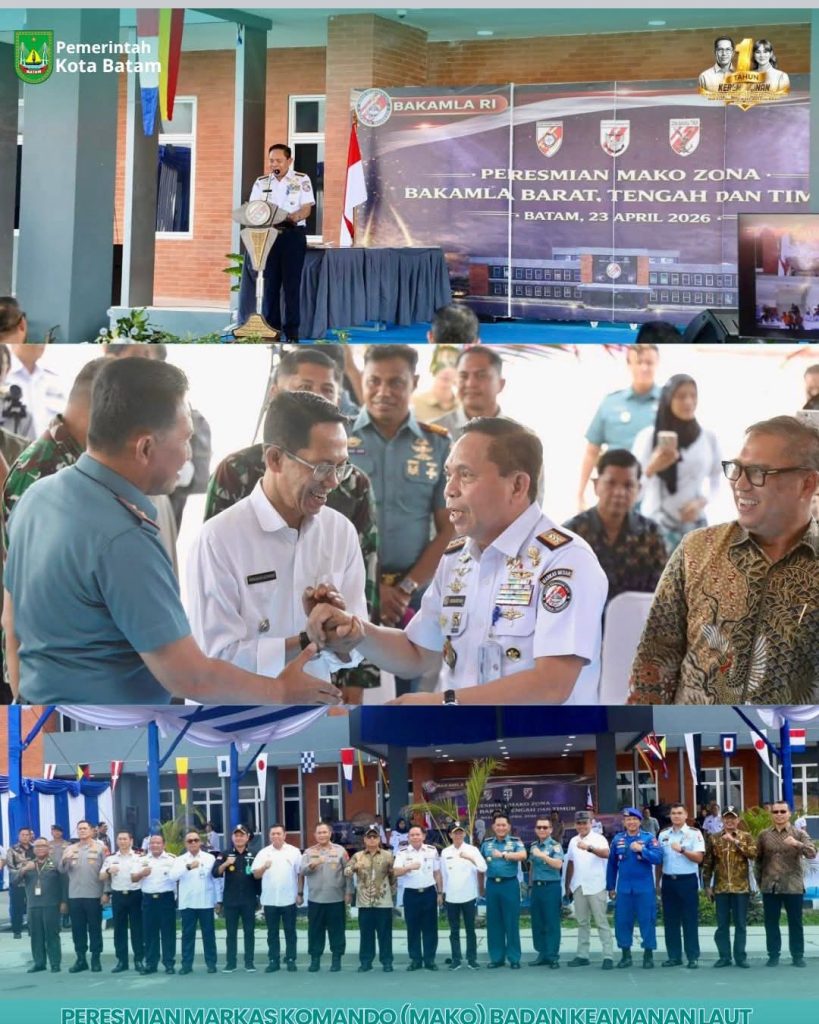 Batam – Wali Kota Batam, Amsakar Achmad, menghadiri peresmian Markas Komando (Mako) Badan Keamanan Laut (Bakamla) Zona Barat, Tengah, dan Timur yang dipusatkan di Mako Bakamla Zona Barat di Jalan Trans Barelang Jembatan IV, Setokok, Bulang, Kota Batam, Kamis (23/4/2026).