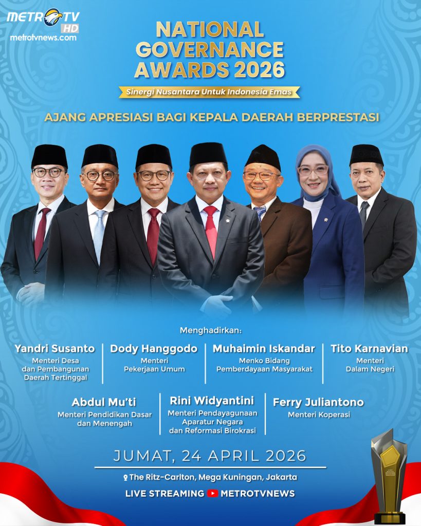 Penyerahan NGA 2026 ini disiarkan langsung oleh MetroTVNews, Jumat, 24 April 2026 jam 19.30 WIB.