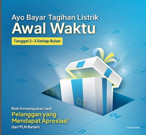 Read MoreBATAM, katasiber.id – PLN Batam mengimbau pelanggan untuk membayar tagihan listrik pascabayar di awal waktu guna memastikan kenyamanan dalam beribadah